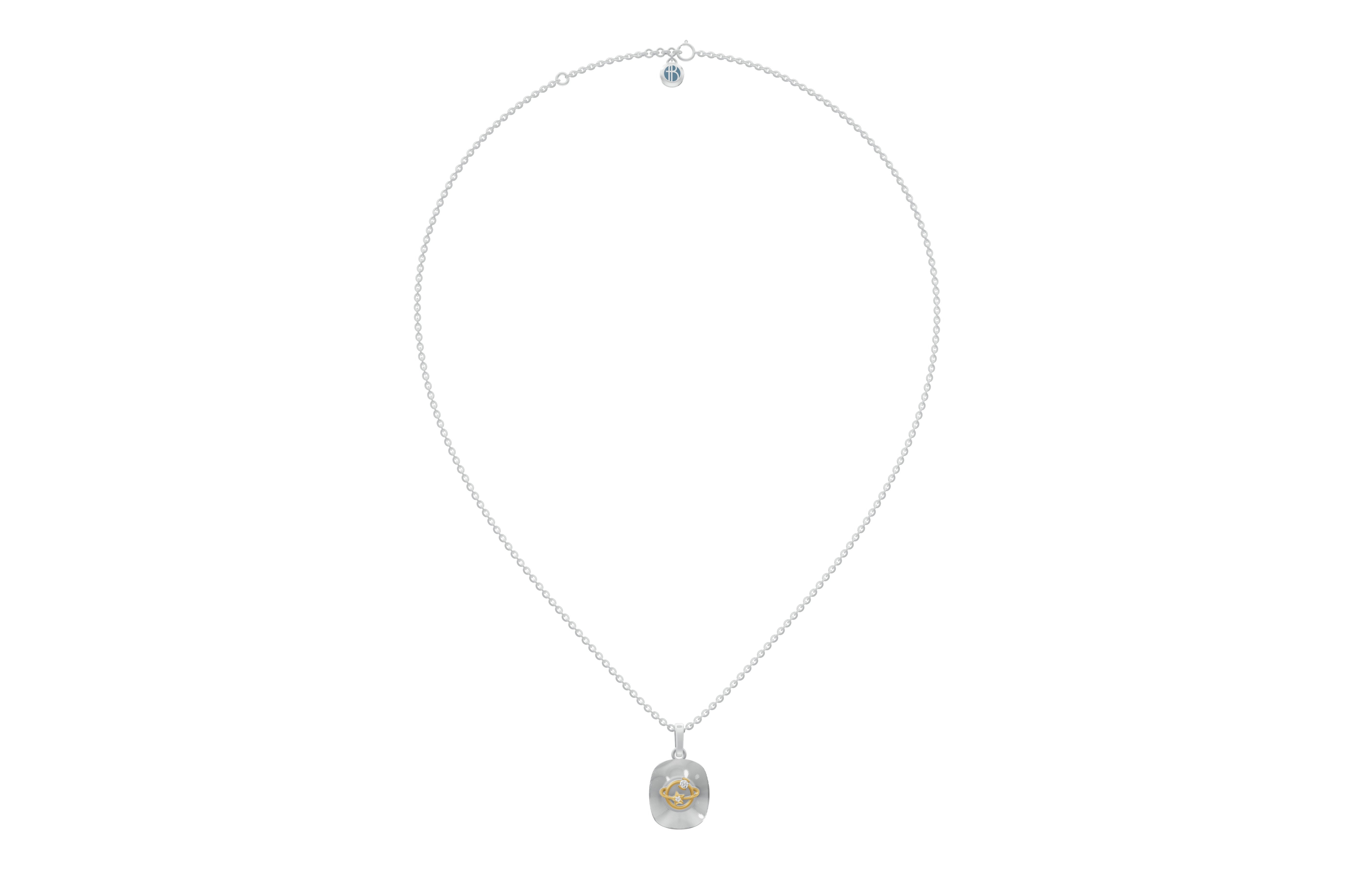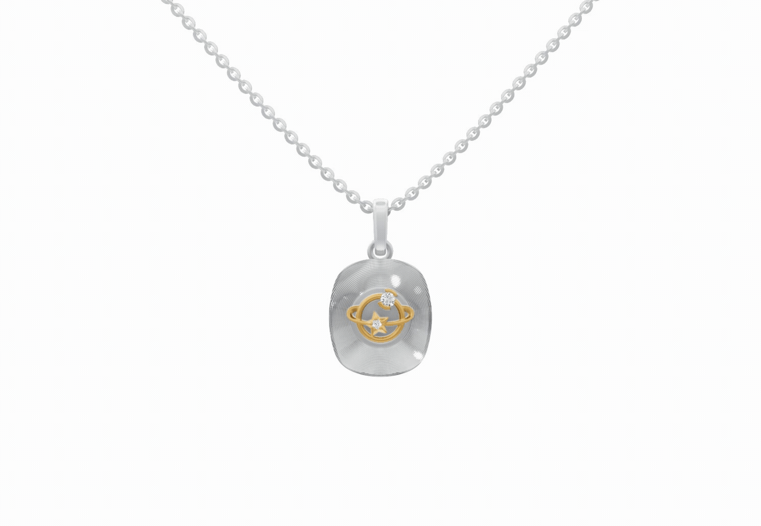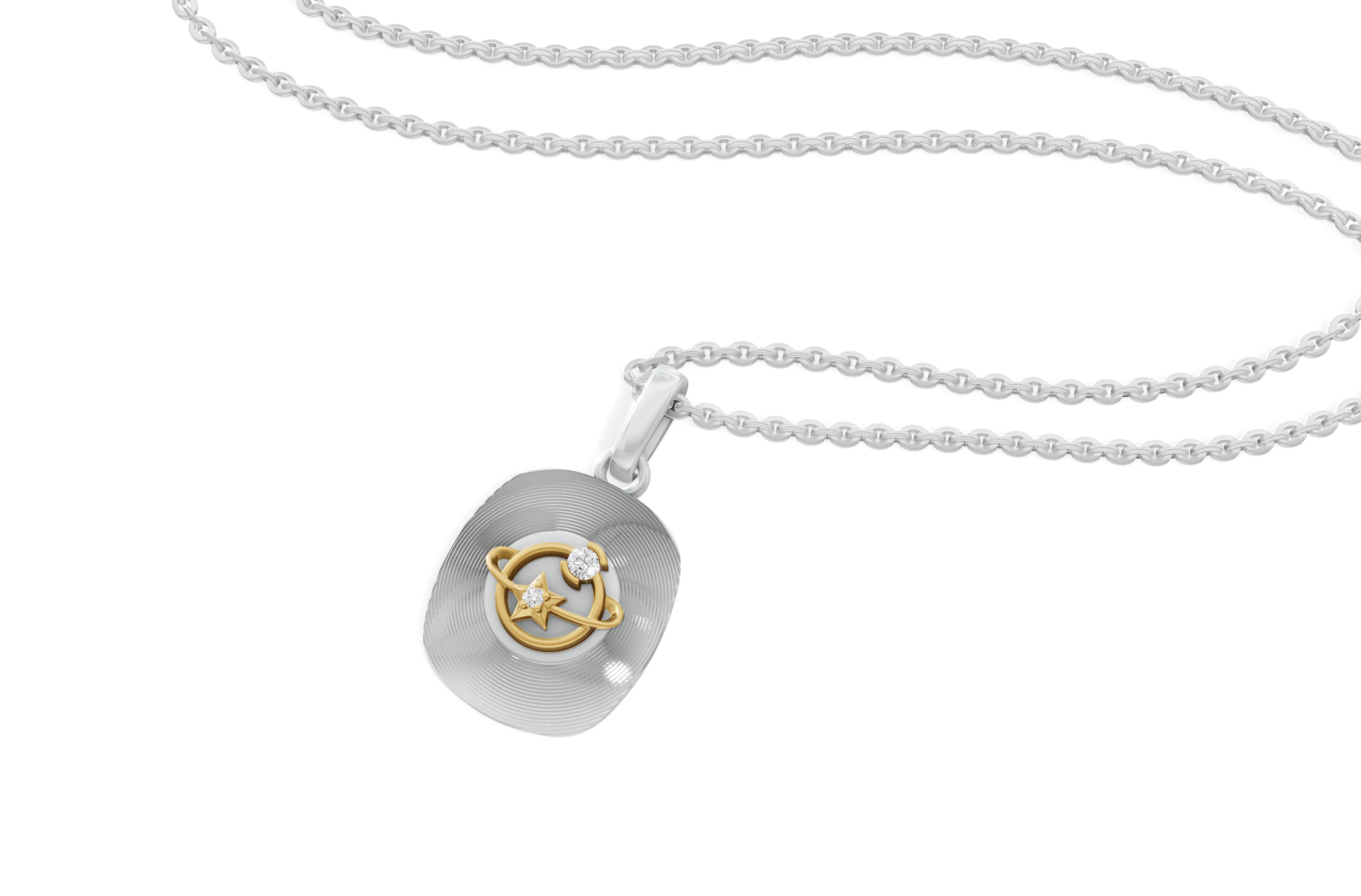 This faceted sterling silver pendant is a celestial ballet, a captivating dance of cosmic bodies. The intricate details of the celestial bodies, combined with the sparkling diamond, create a sense of awe and wonder. The intricate details in Pendant evoke the harmony and majesty of cosmic motion.