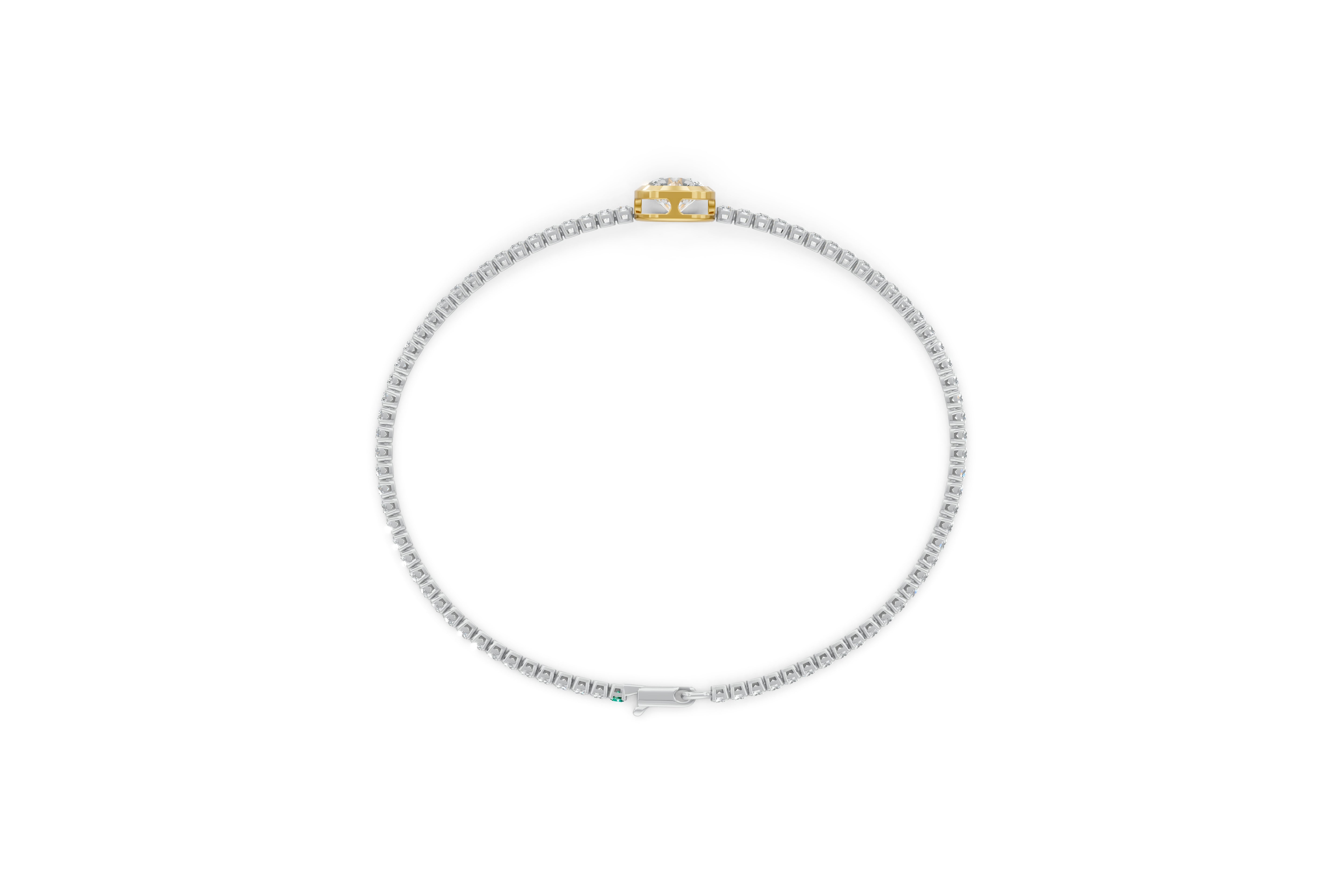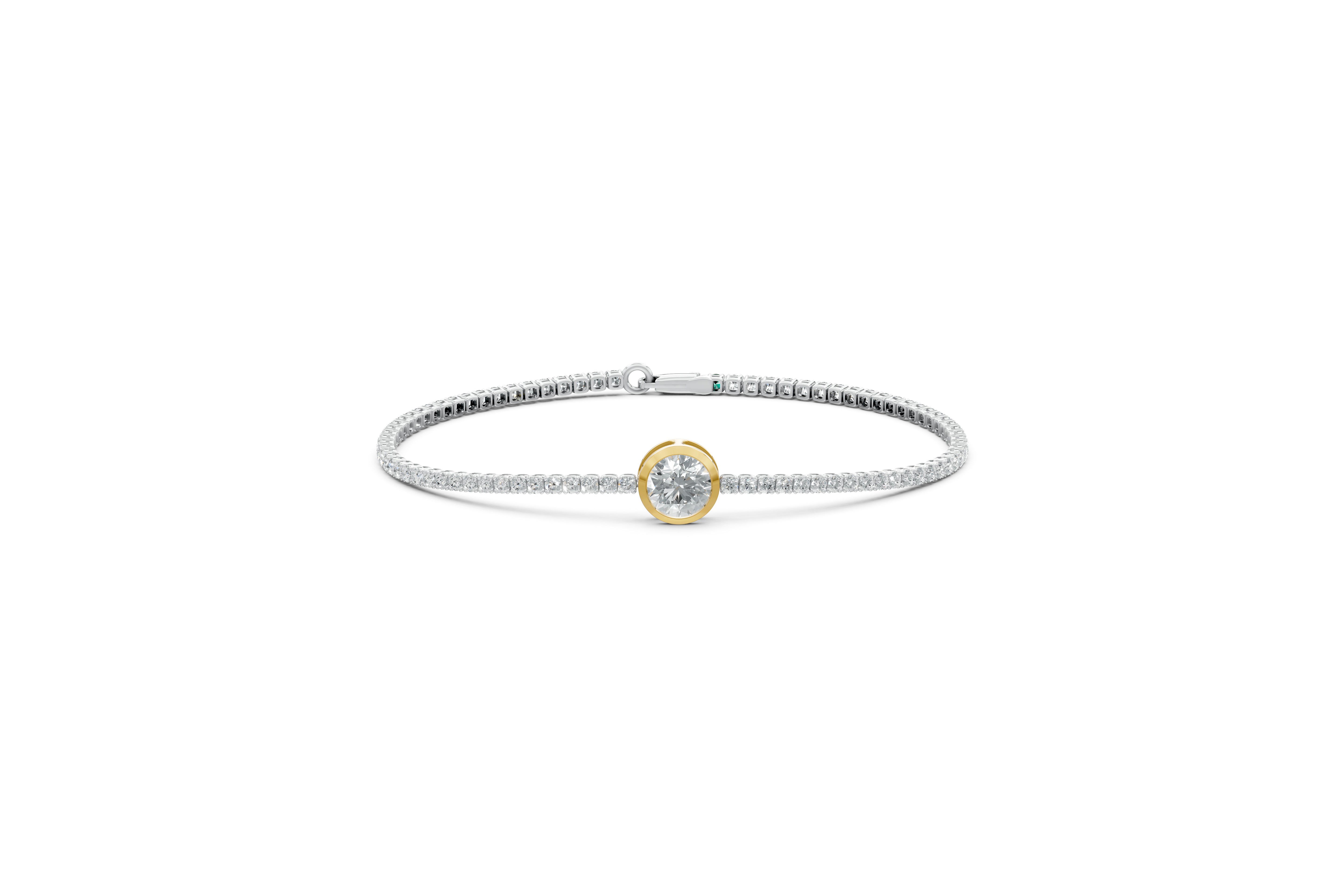A modern twist on the classic tennis bracelet, Serena features a single solitaire diamond set in a seamless line of 18K Vermeil-plated Sterling Silver. Finished with our signature Blissed Green Diamond, it’s a subtle statement of grace and quiet strength.